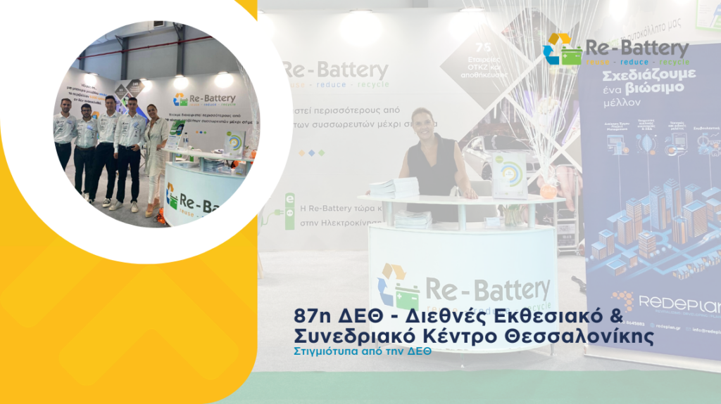 Η Re-Battery, ως Σύστημα για την Εναλλακτική Διαχείριση Συσσωρευτών οχημάτων & βιομηχανίας, συμμετείχε στην 87η Διεθνή Έκθεση Θεσσαλονίκης που πραγματοποιήθηκε από 9 έως 17 Σεπτεμβρίου.