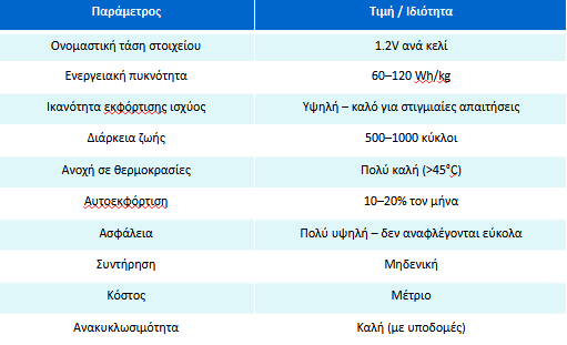 Τεχνικά Χαρακτηριστικά Συσσωρευτών Ni-MH.